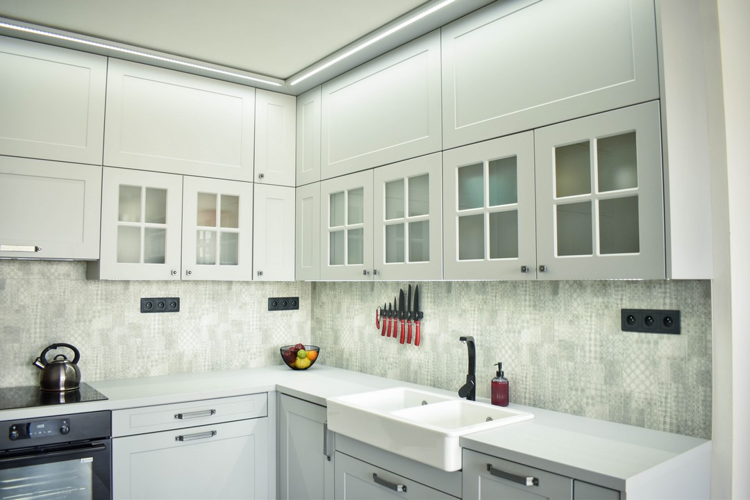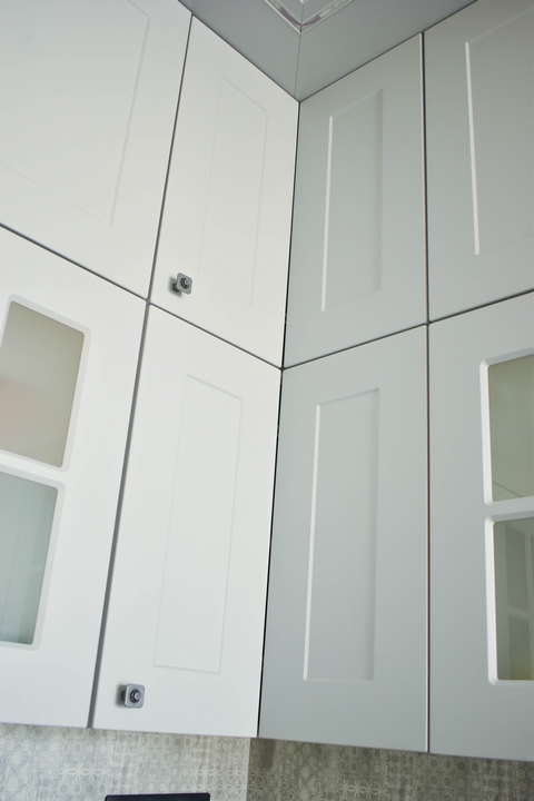 V kuchyni najdeme také praktickou dvoupatrovou rohovou skříňku, takže každý prostor v lince je využit do posledního milimetru.