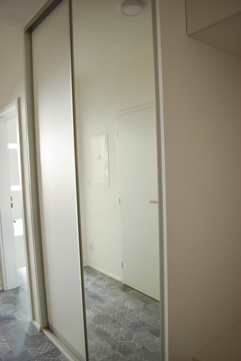 Byt pro pár či jednotlivce jsme před nedávnem kompletně vybavili na olomouckých Zlatých terasách. 2+kk v novostavbě si paní majitelka navrhovala s naší asistencí sama a zadání bylo jasné: kuchyňská linka, obývací stěna, dvě vestavěné skříně a koupelnová skříňka.